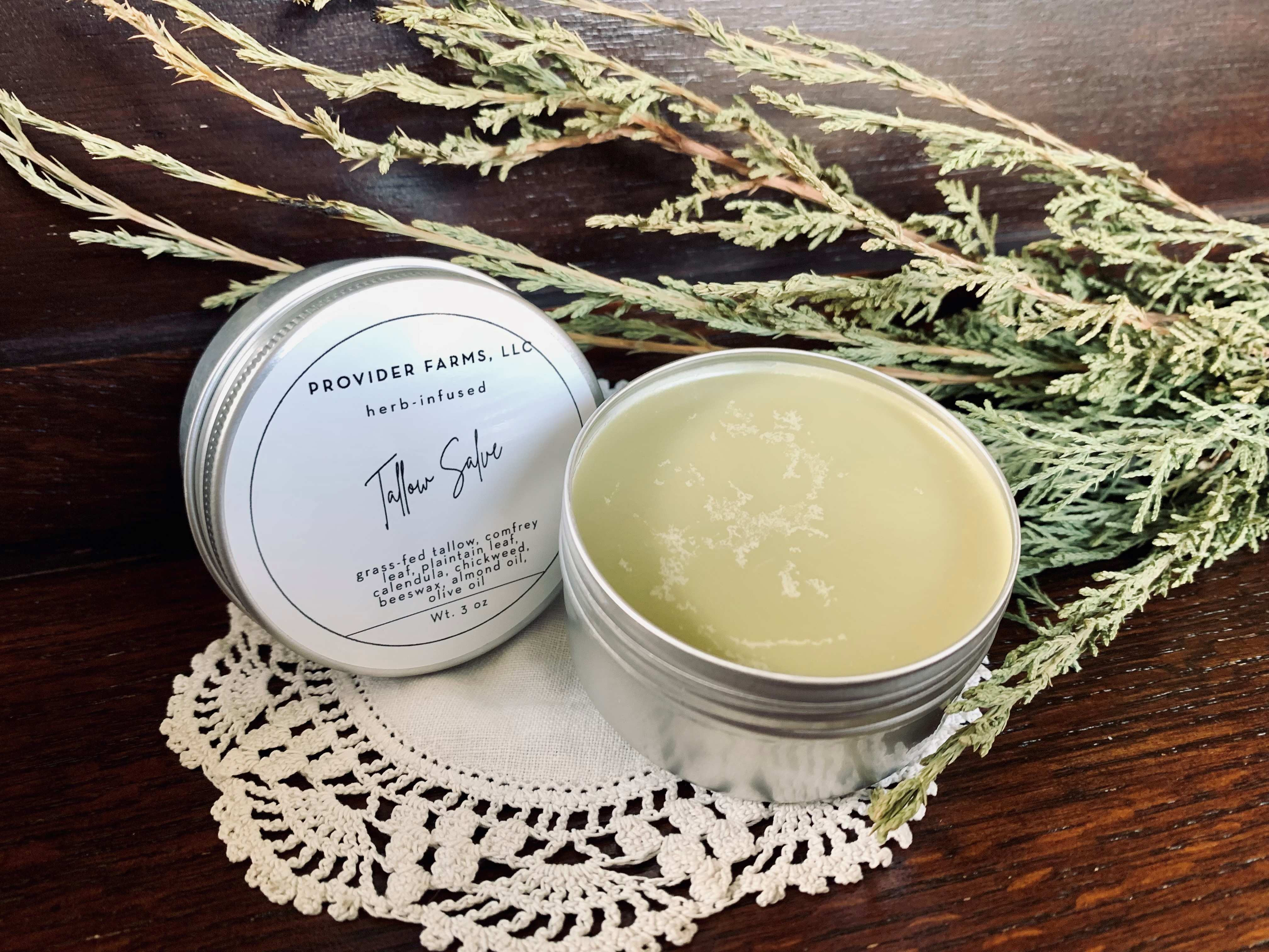 Tallow is wonderfully nutritious for the skin, soothing, rebuilding as well as being anti-inflammatory and anti-microbial. We render our own tallow from our own grass-fed beef.